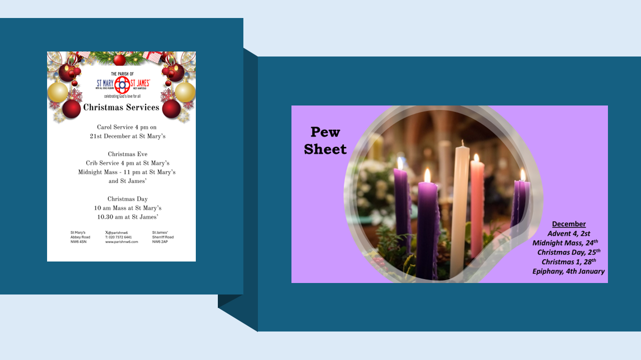 Contacting the parish: For church related matters including baptism, weddings, funerals, finance and general enquiries please email Di (parish.secretarynw6@gmail.com) or use our Contact Us page. If a query relates to St Mary’s hall bookings or building issues contact Wilson (office.parishnw6@gmail.com). Obviously, if your email is of a confidential nature or relates to a safeguarding issue please email Fr Robert direct giving a brief summary of the issue in the subject heading.